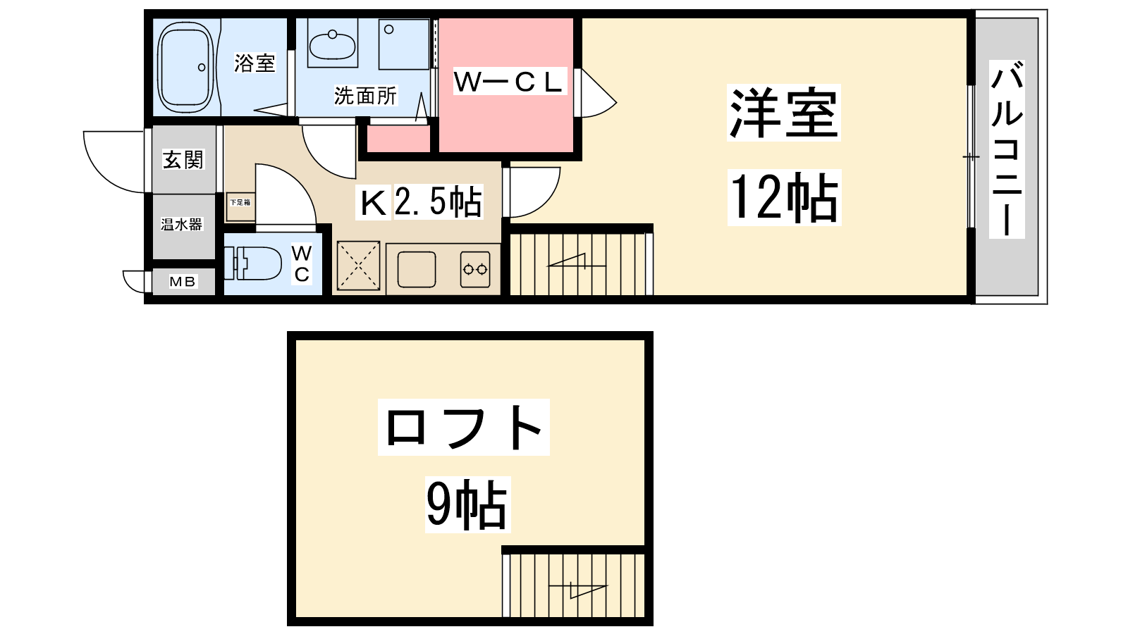 広めのロフトは魅力的!1Kだけど二部屋あるみたい。川西市で最強の物件です。
