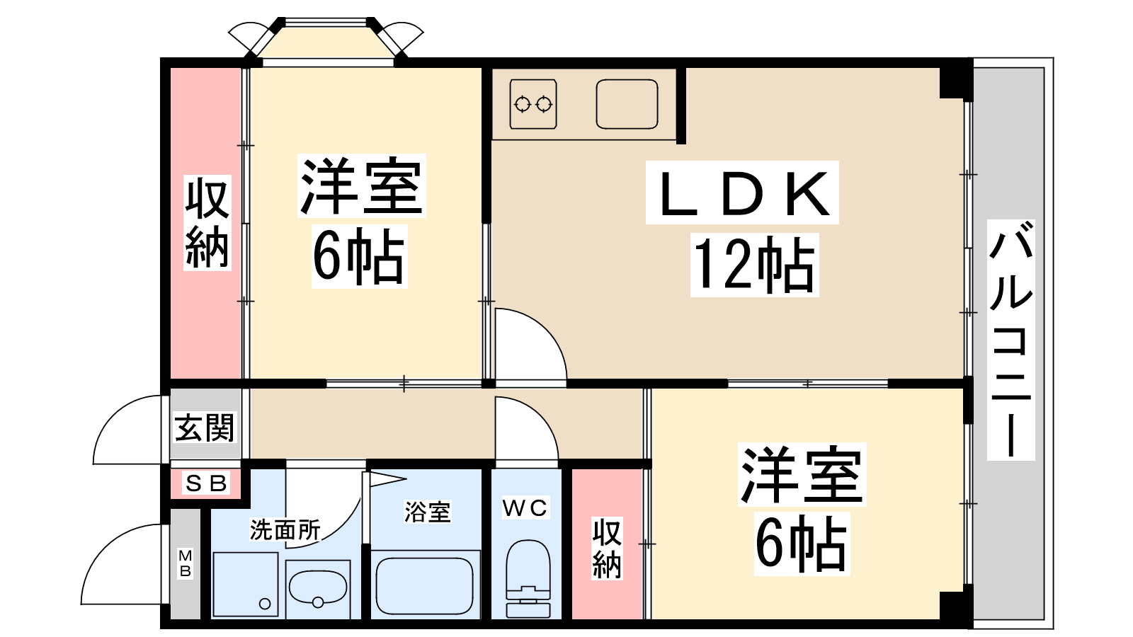 - LDK12帖、和室6帖、和室6帖