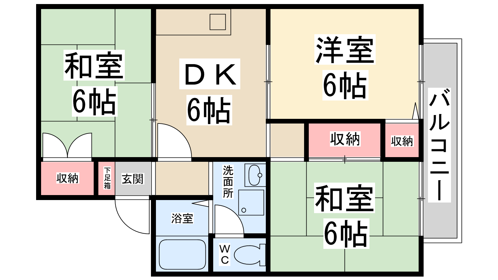 - DK6帖、洋室6帖、和室6帖、和室6帖
