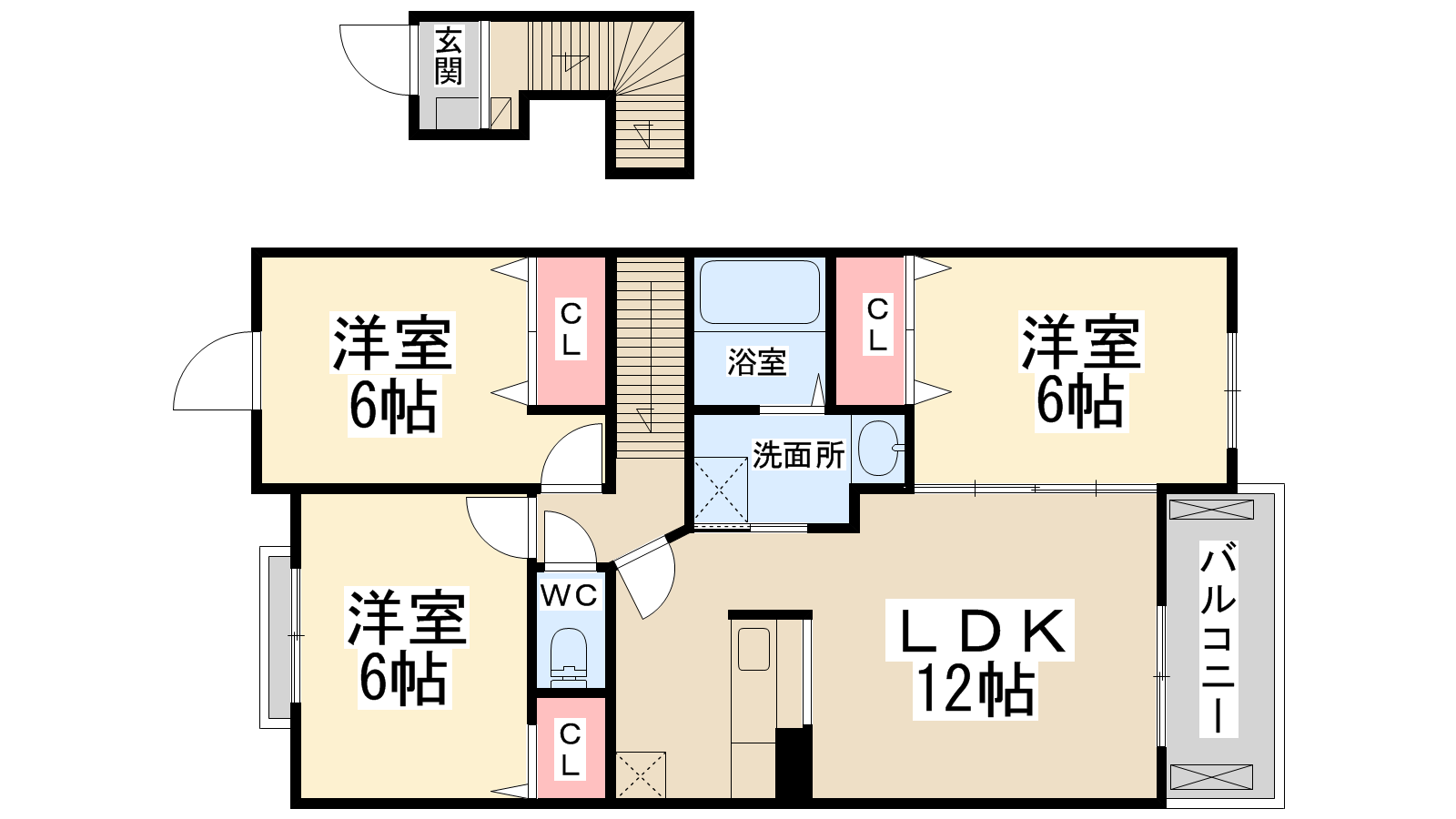 - 洋室6帖、洋室6帖、洋室6帖、LDK12帖