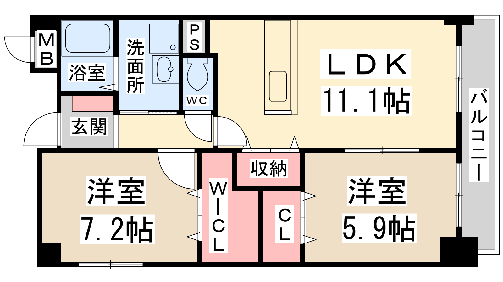 - LDK11.1帖、洋室7.2帖、洋室5.9帖