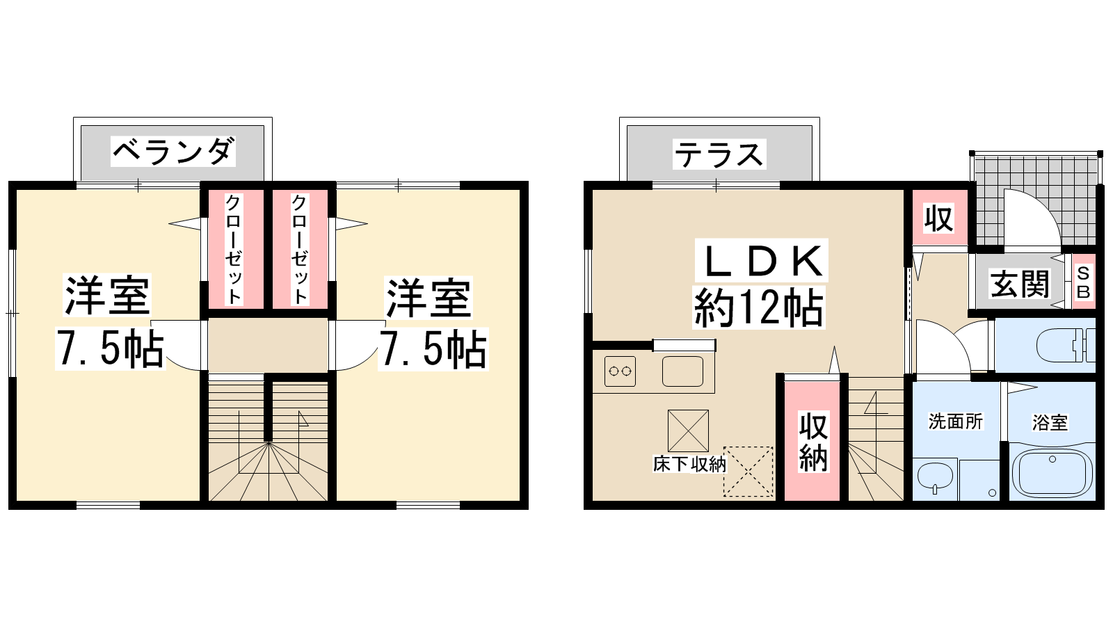 - LDK11.75帖、洋室7.5帖、洋室7.5帖