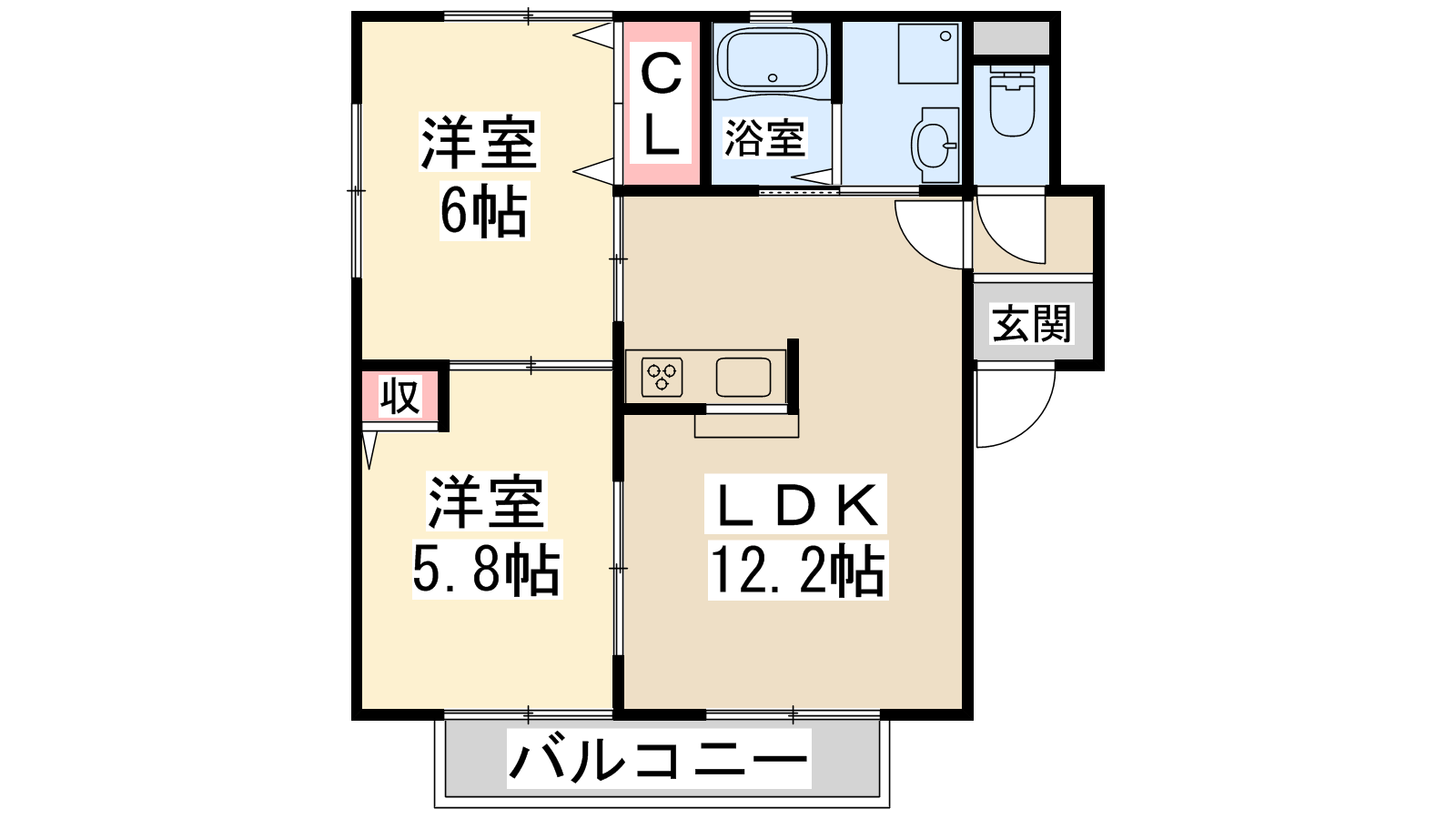 - LDK12.2帖、洋室6帖、洋室5.8帖
