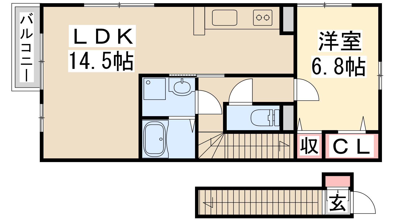 - LDK14.5帖、洋室6.8帖