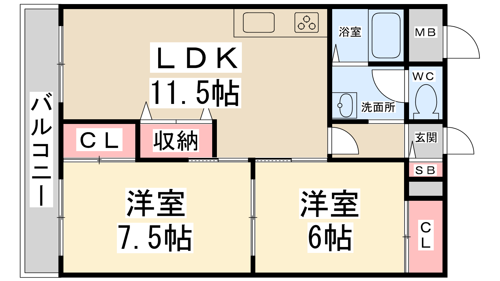 - LDK11.5帖、洋室7.5帖、洋室6帖