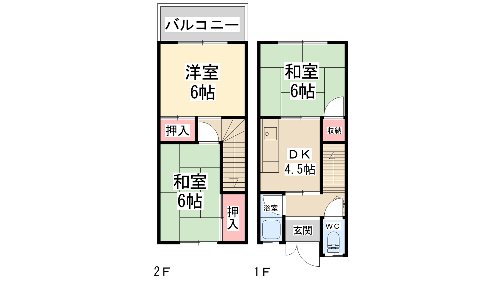 - DK4.5帖、和室6帖、和室6帖、洋室6帖