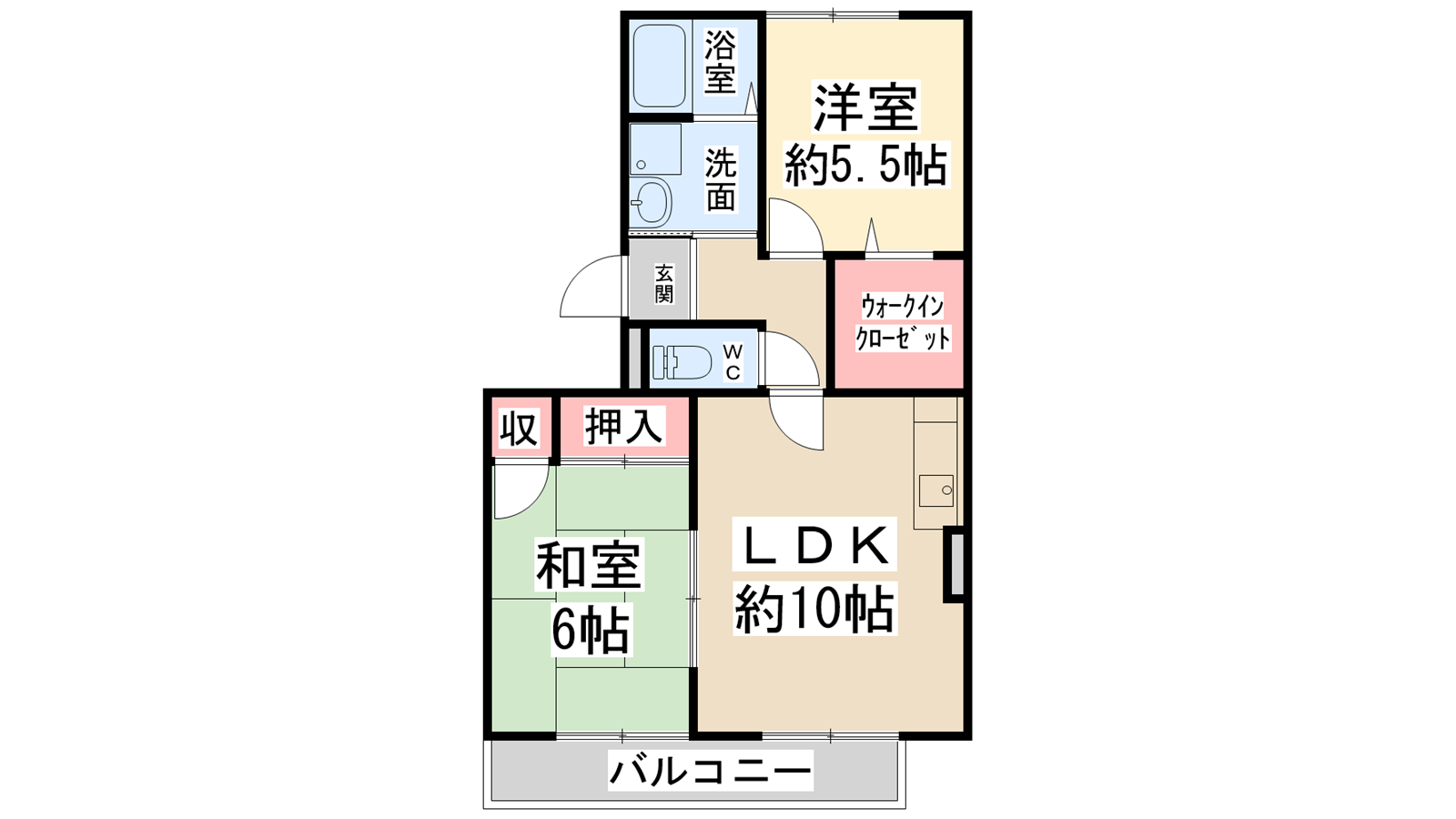 - 和室6帖、洋室5.5帖、LDK10帖