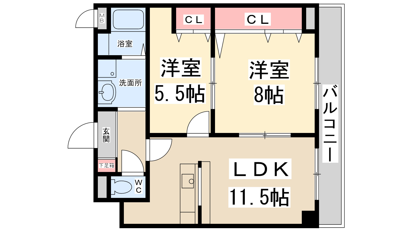 - LDK11.5帖、洋室8帖、洋室5.5帖