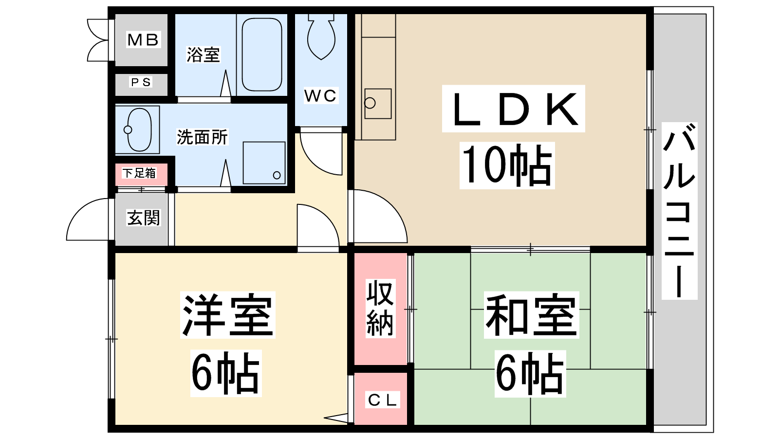 - LDK10帖、洋室6帖、和室6帖