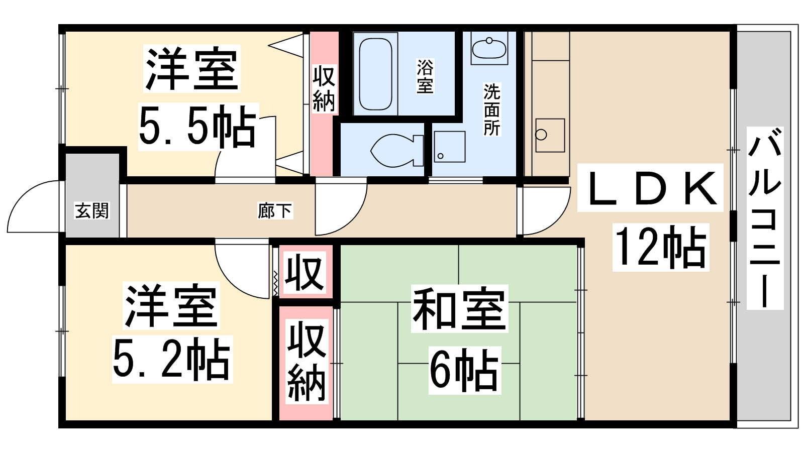 - LDK12帖、洋室5帖、洋室5.5帖、和室6帖