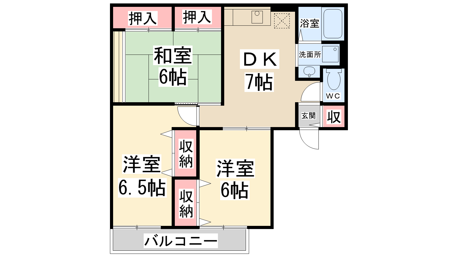 - DK7帖、洋室6.5帖、洋室6帖、和室6帖