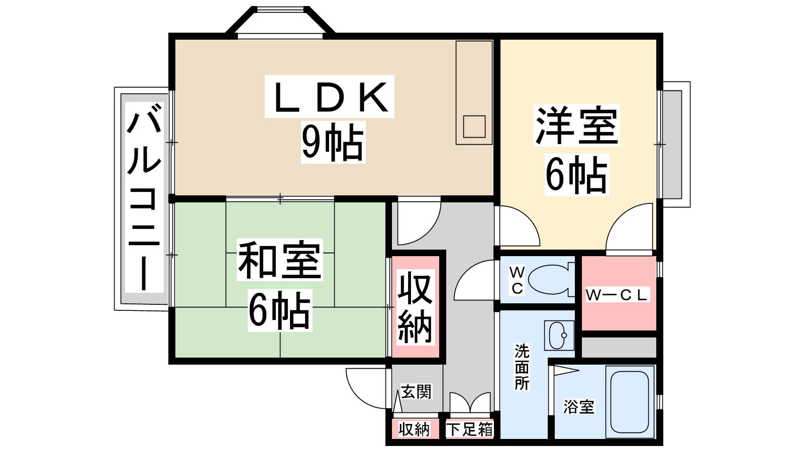- LDK9帖、洋室6帖、和室6帖