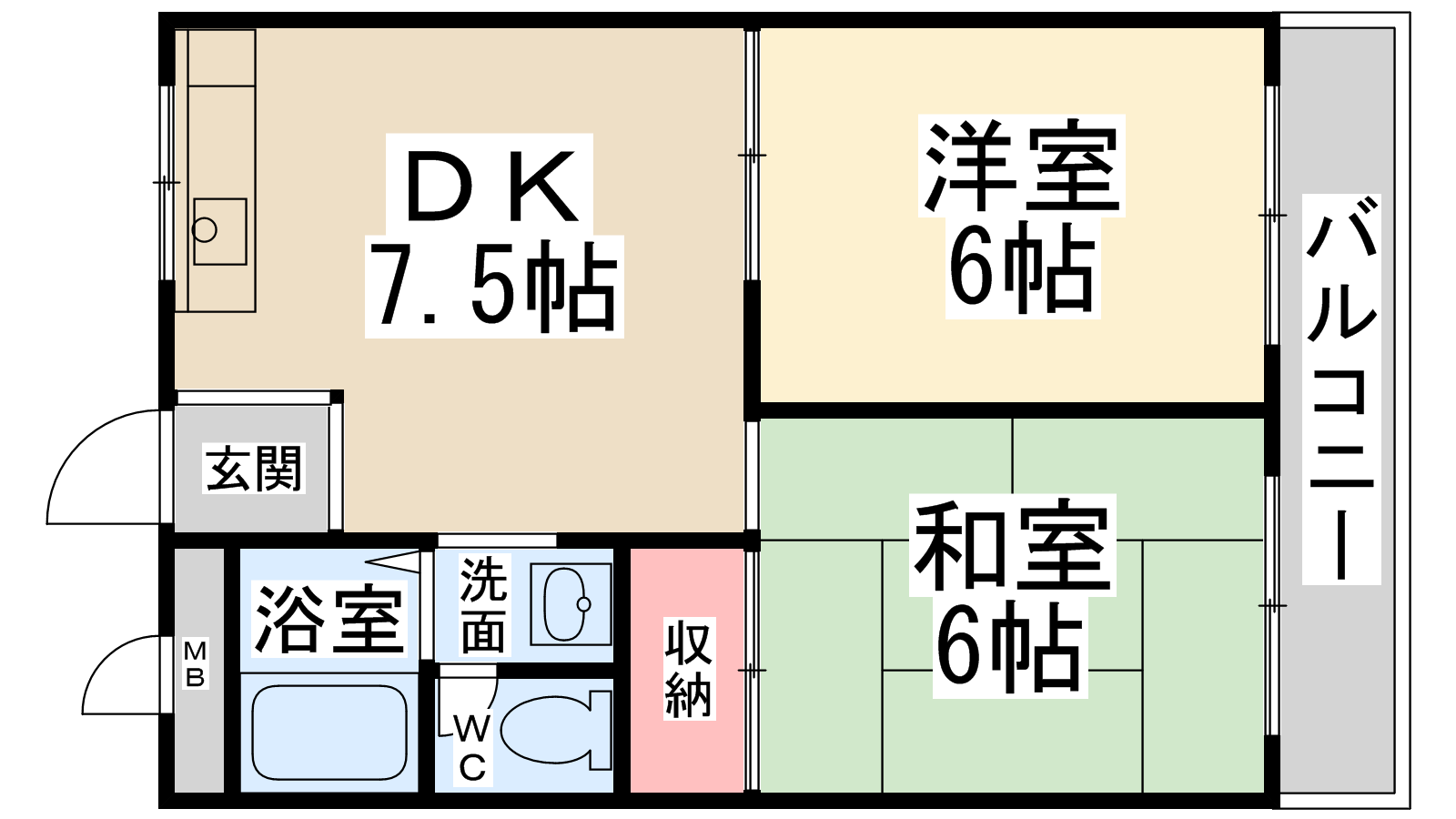 - DK7帖、和室6帖、洋室6帖