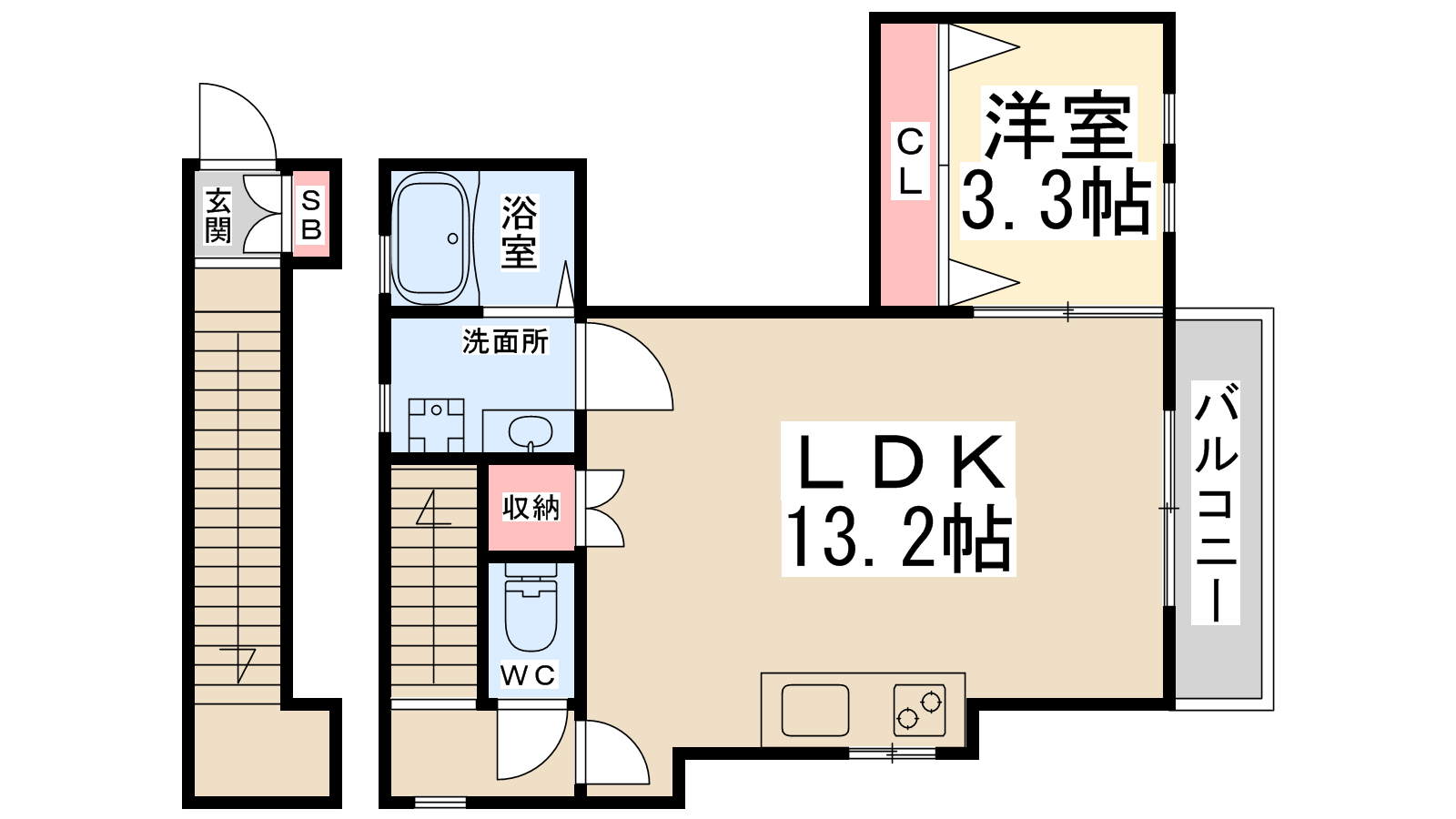 - LDK13.2帖、洋室3.3帖