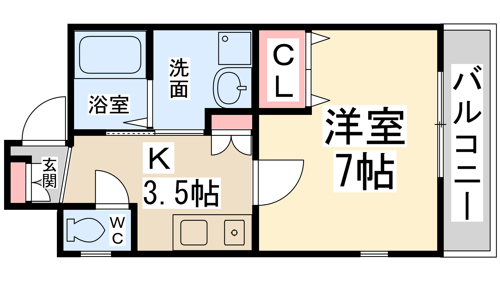 - K3.5帖、洋室7帖