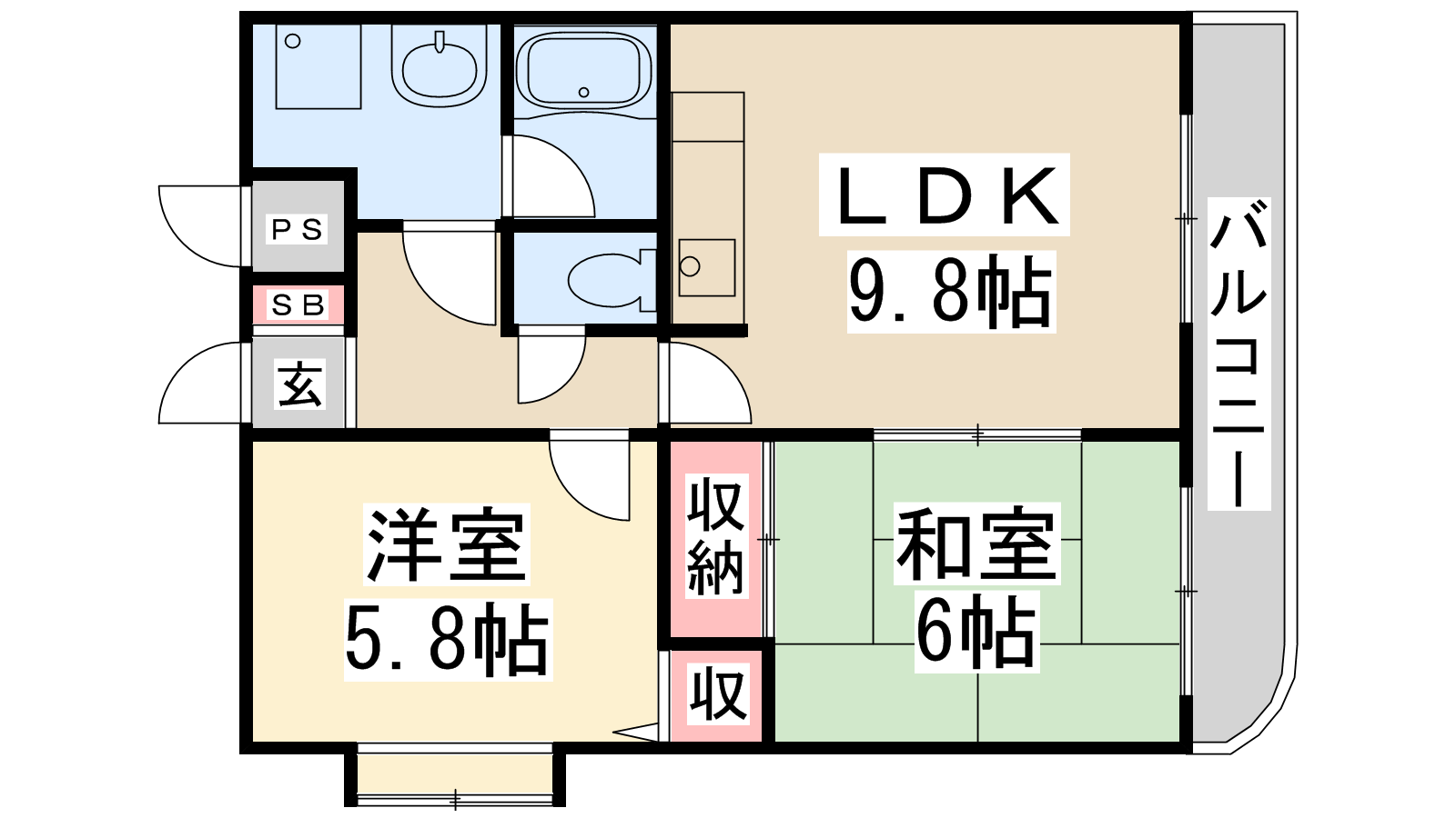 - 和室6帖、洋室5.8帖、LDK9.8帖