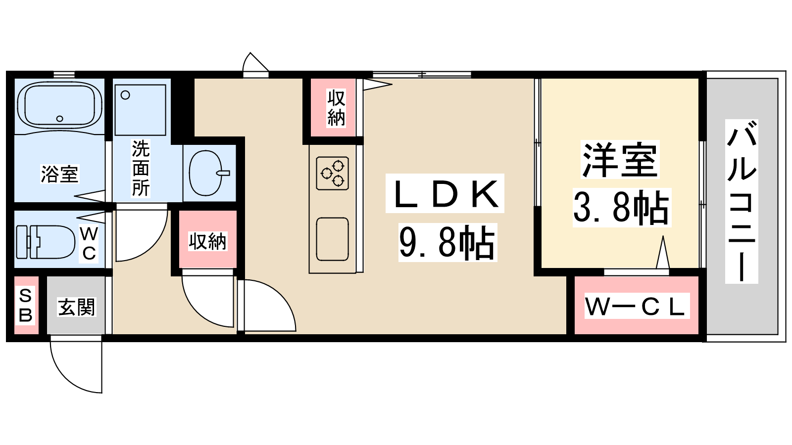 - LDK9.8帖、洋室3.8帖