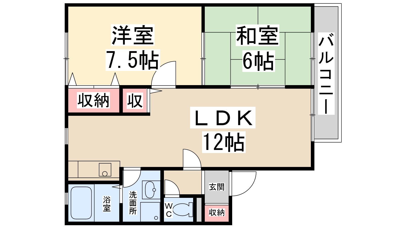 - 洋室7.5帖、和室6帖、LDK12帖
