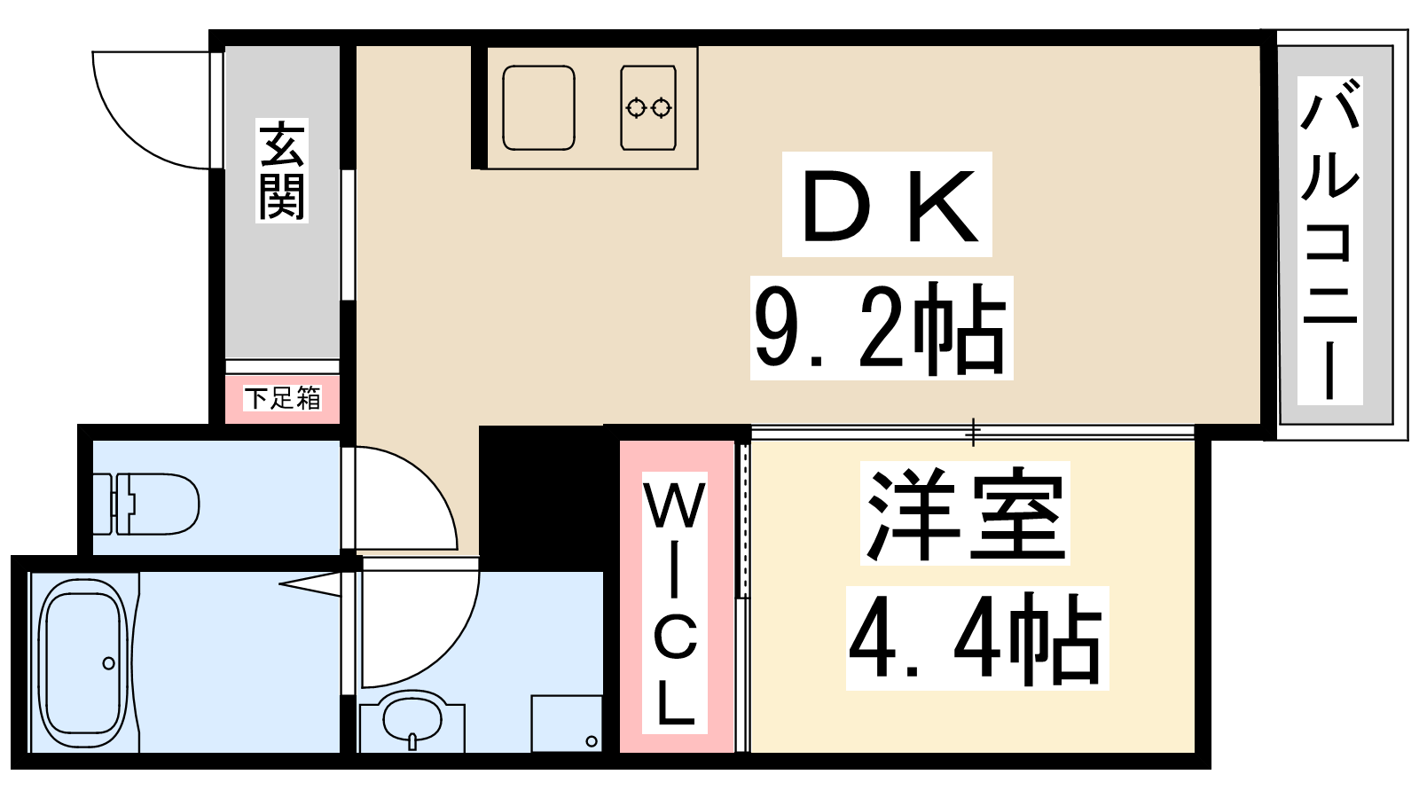 - LDK9.2帖、洋室4.4帖