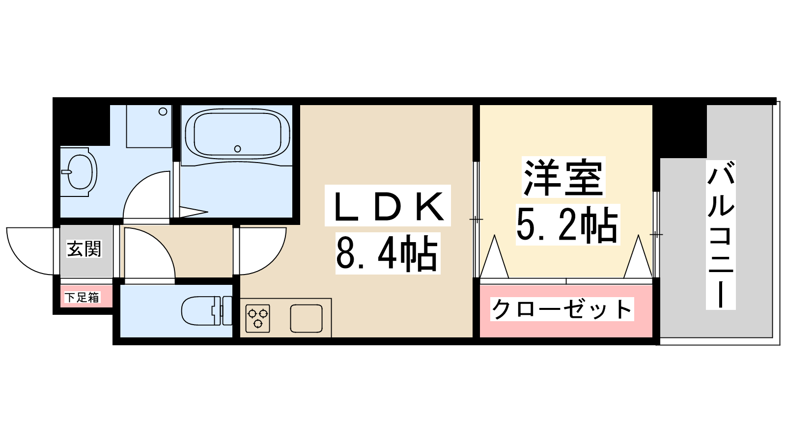 - LDK8.4帖、洋室5.2帖