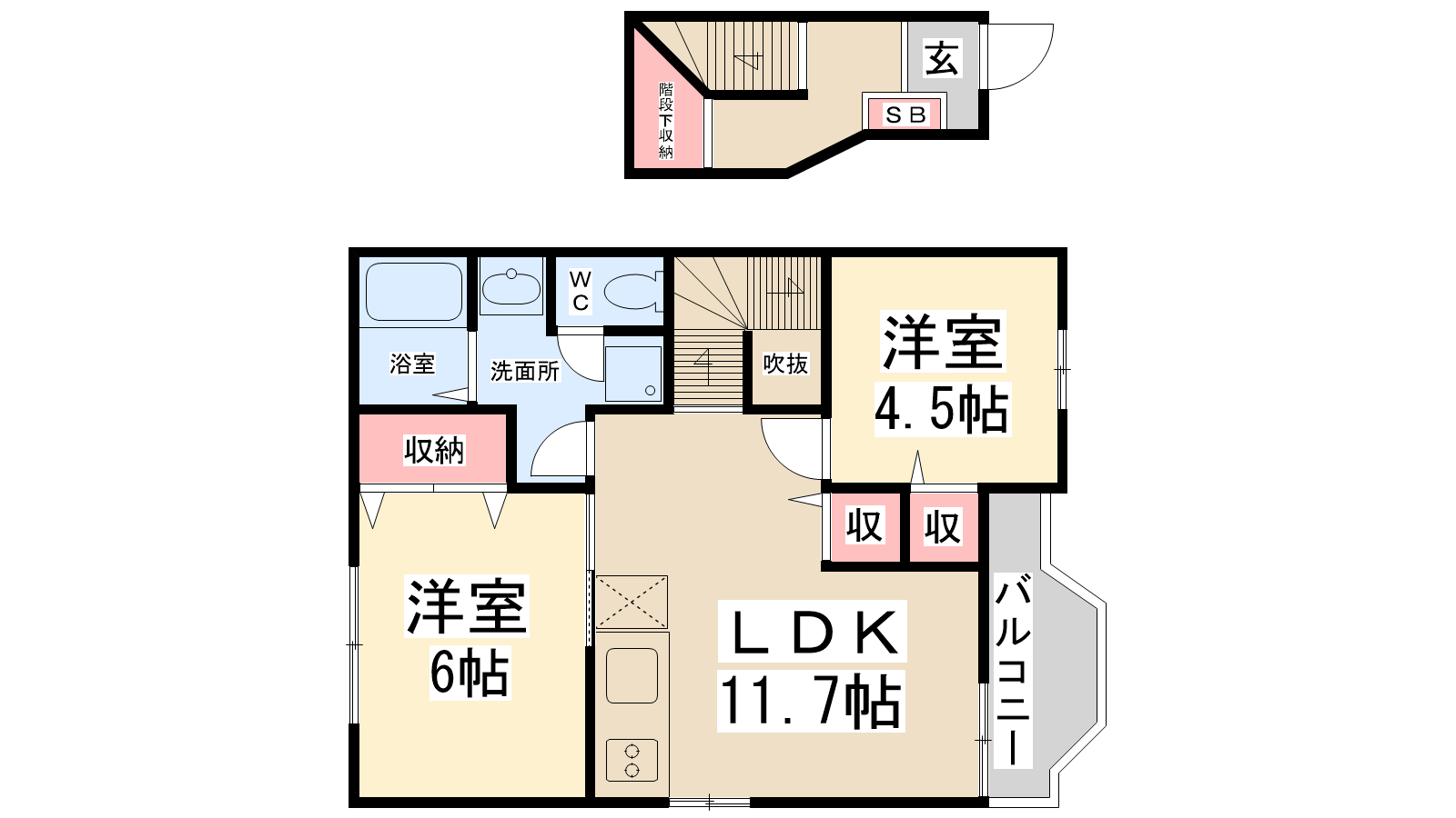- LDK11.7帖、洋室4.5帖、和室6帖