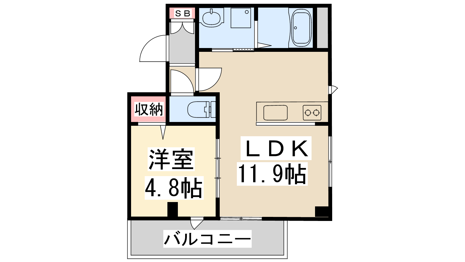 - LDK11.9帖、洋室4.8帖