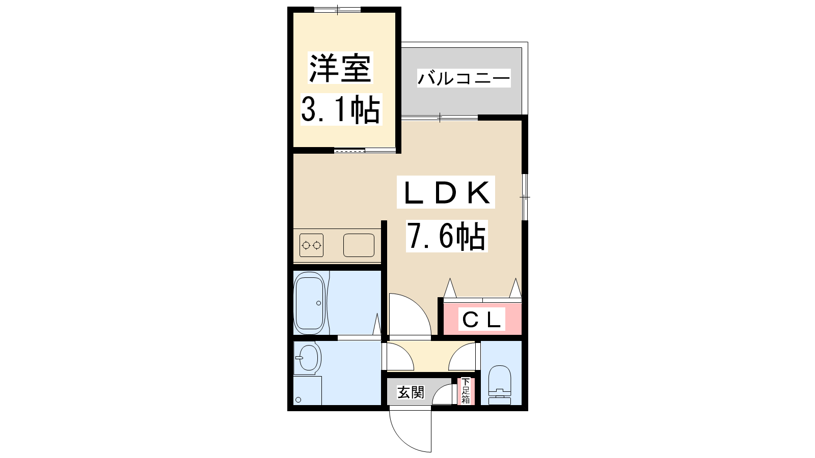 - LDK7.6帖、洋室3.1帖