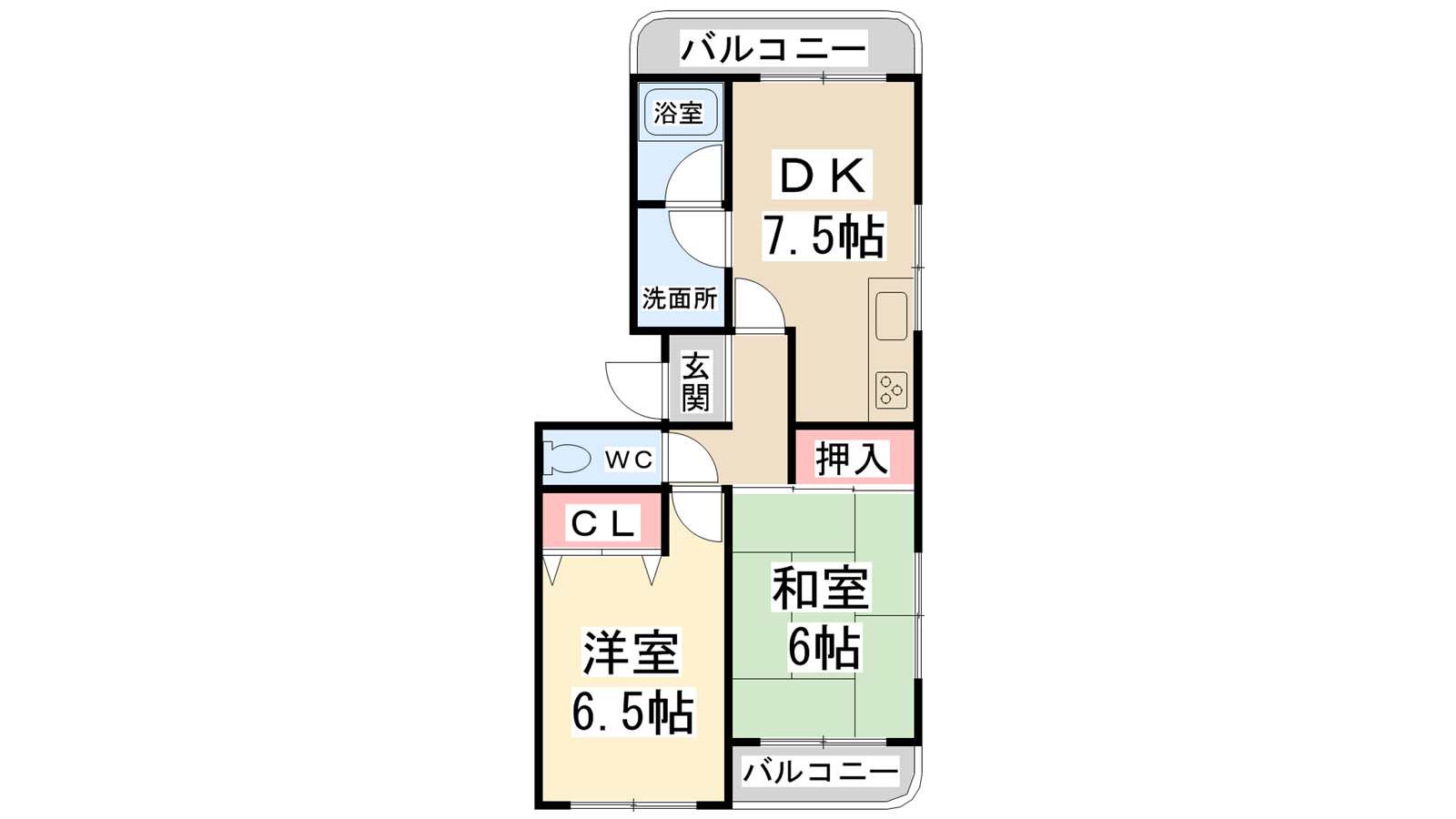 - DK7.5帖、洋室6.5帖、和室6帖