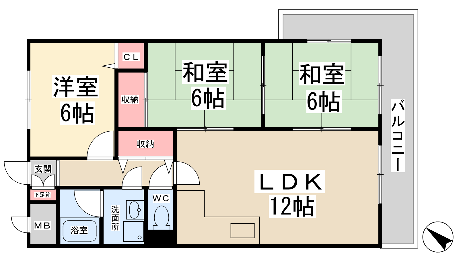 - LDK12帖、洋室6帖、和室6帖、和室6帖