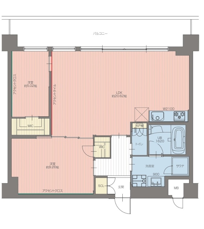 - LDK20.62帖、洋室9.26帖、洋室5.02帖