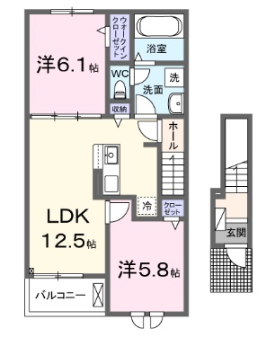 - LDK12.5帖、洋室6.1帖、洋室5.8帖