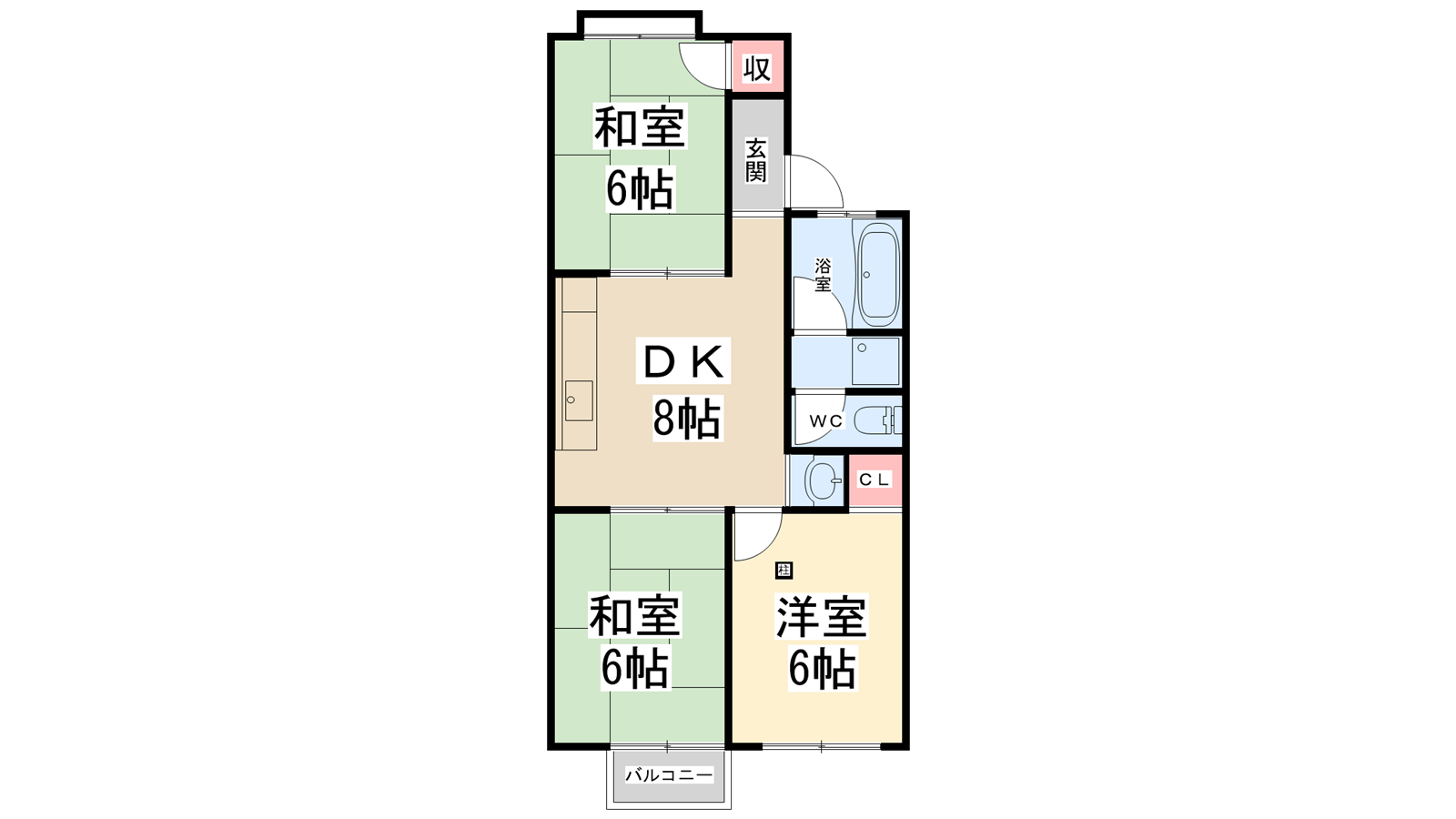 - DK8帖、和室6帖、和室6帖、洋室6帖