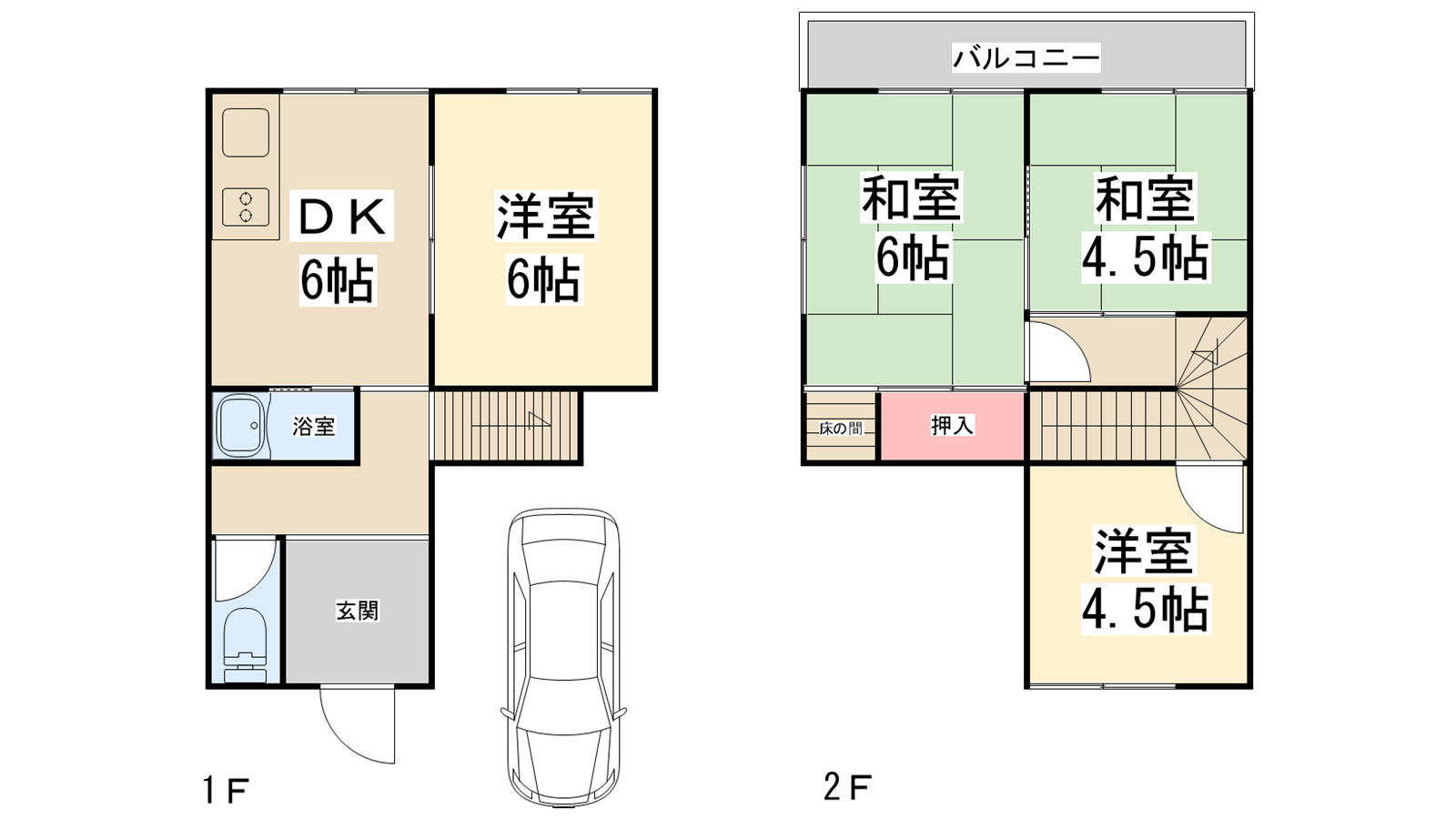 - DK6帖、洋室6帖、和室6帖、和室4.5帖、洋室4.5帖