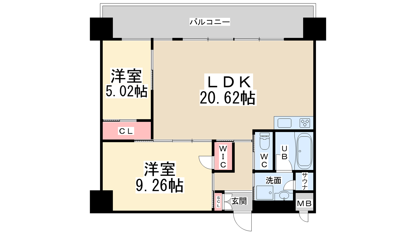 - LDK20.62帖、洋室9.26帖、洋室5.02帖