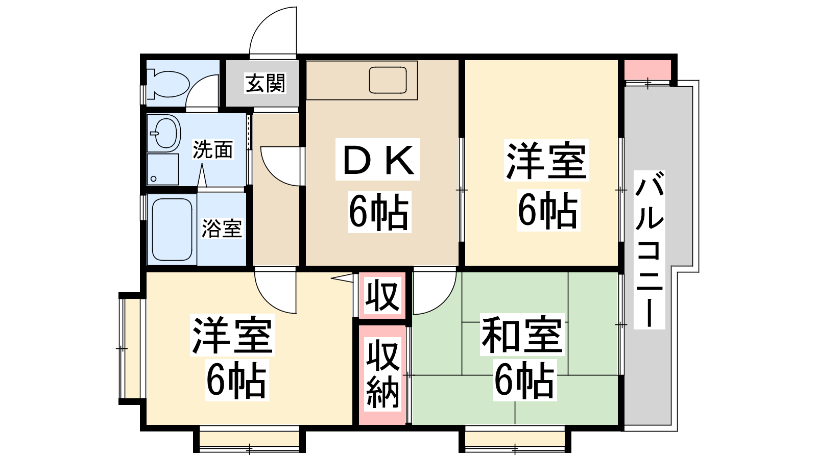 - DK6帖、洋室6帖、洋室6帖、和室6帖