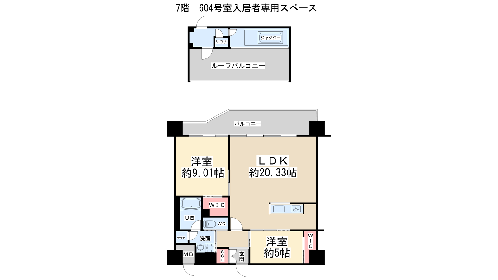 - LDK20.33帖、洋室9.01帖、洋室5帖