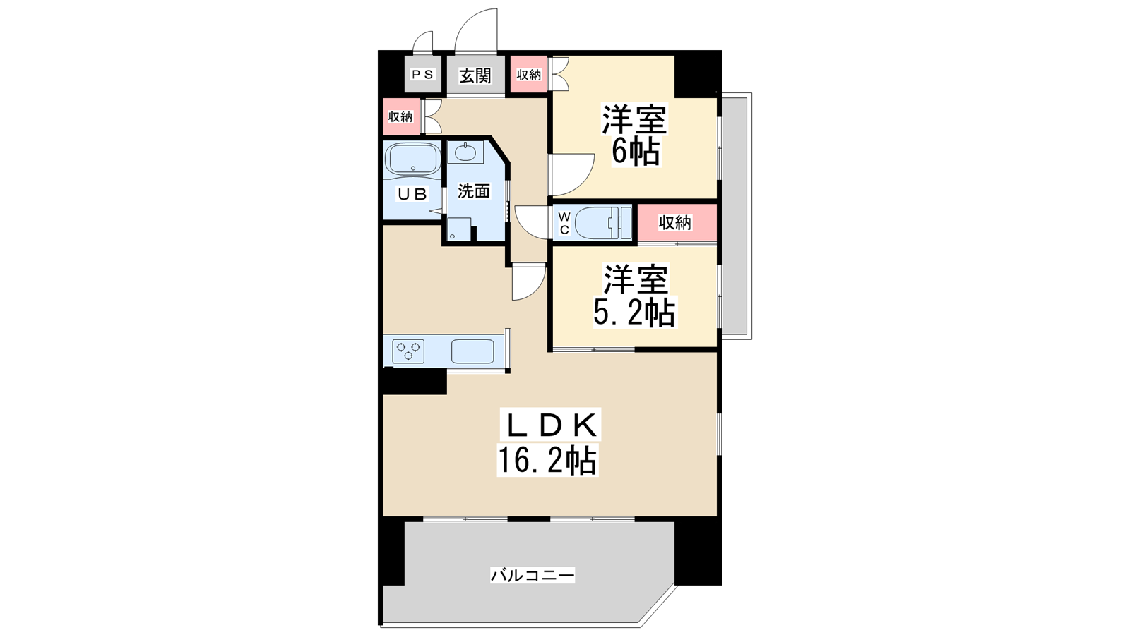 - LDK16.2帖、洋室6帖、洋室5.2帖