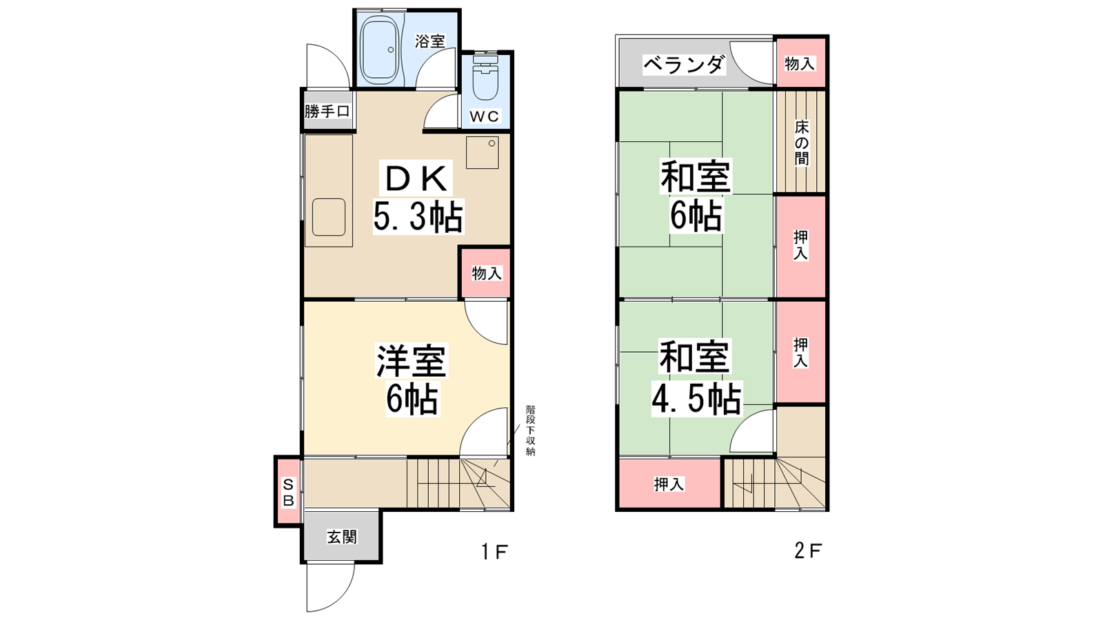 - DK5.3帖、洋室6帖、和室6帖、和室4.5帖