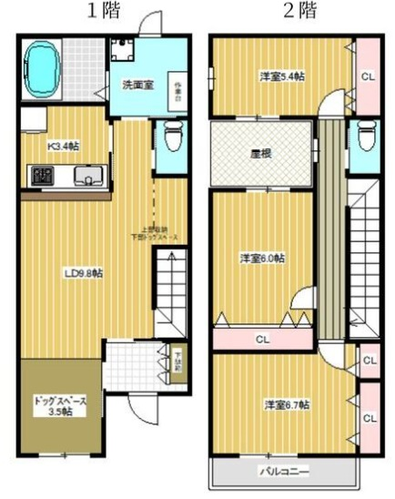 - LDK13.2帖、洋室5.4帖、洋室6帖、洋室6.7帖