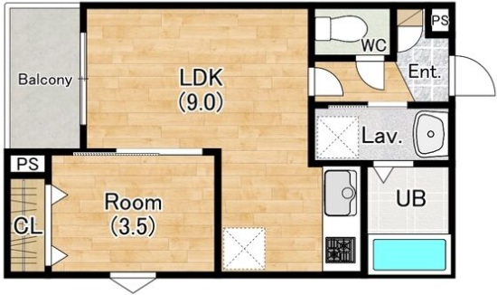 - LDK9帖、洋室3.5帖