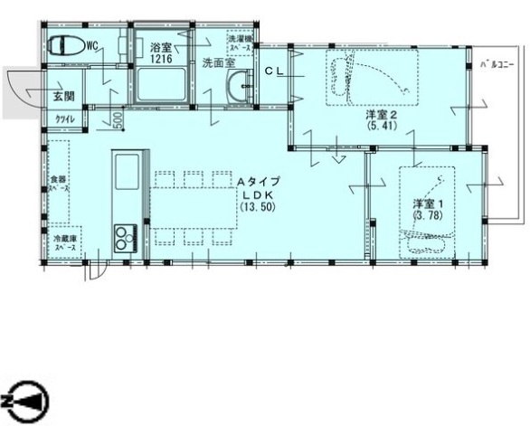 - LDK13.5帖、洋室5.41帖、洋室3.78帖