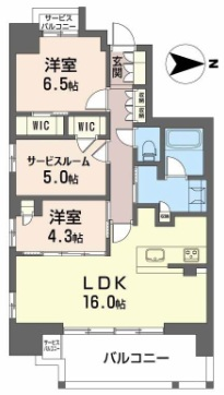 - LDK16帖、洋室4.3帖、洋室6.5帖、S5帖