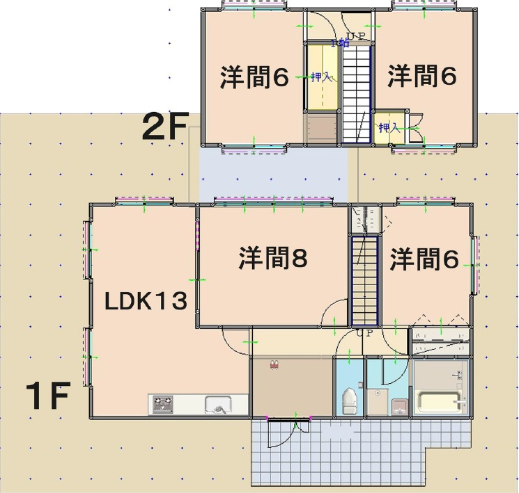 - LDK13帖、洋室8帖、洋室6帖、洋室6帖、洋室6帖