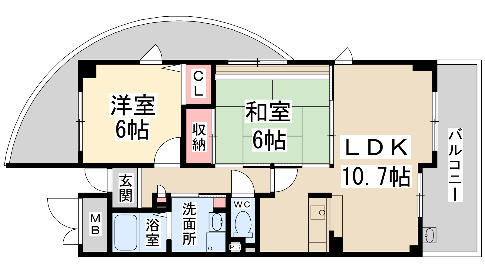 - D7.2帖、洋室6帖、和室6帖