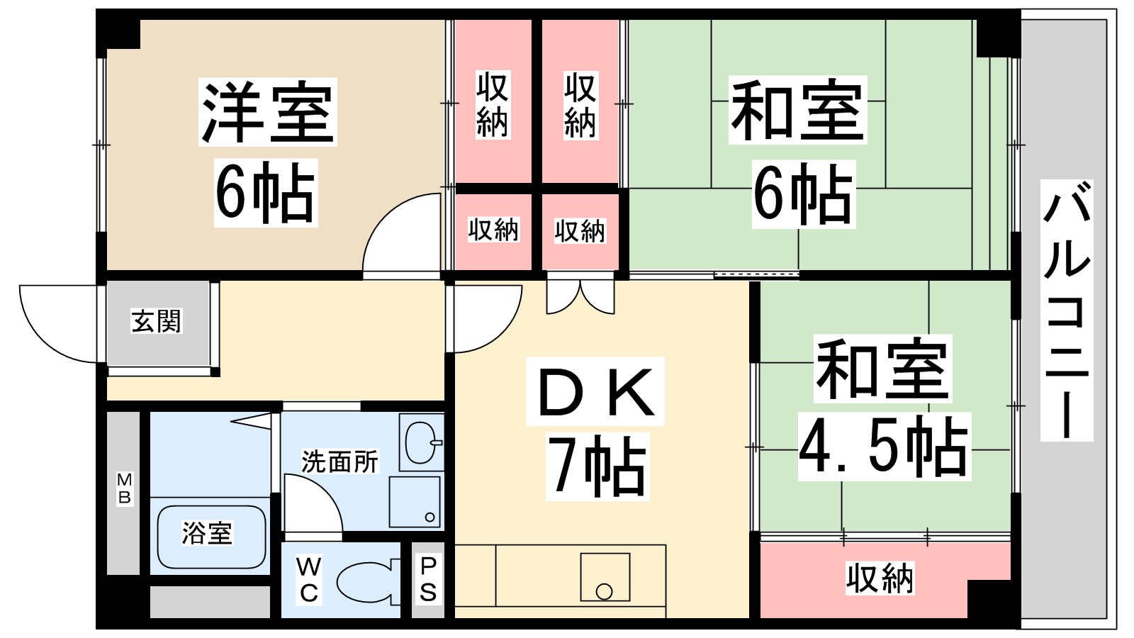 - 洋室6帖、和室6帖、和室4.5帖、DK6.5帖