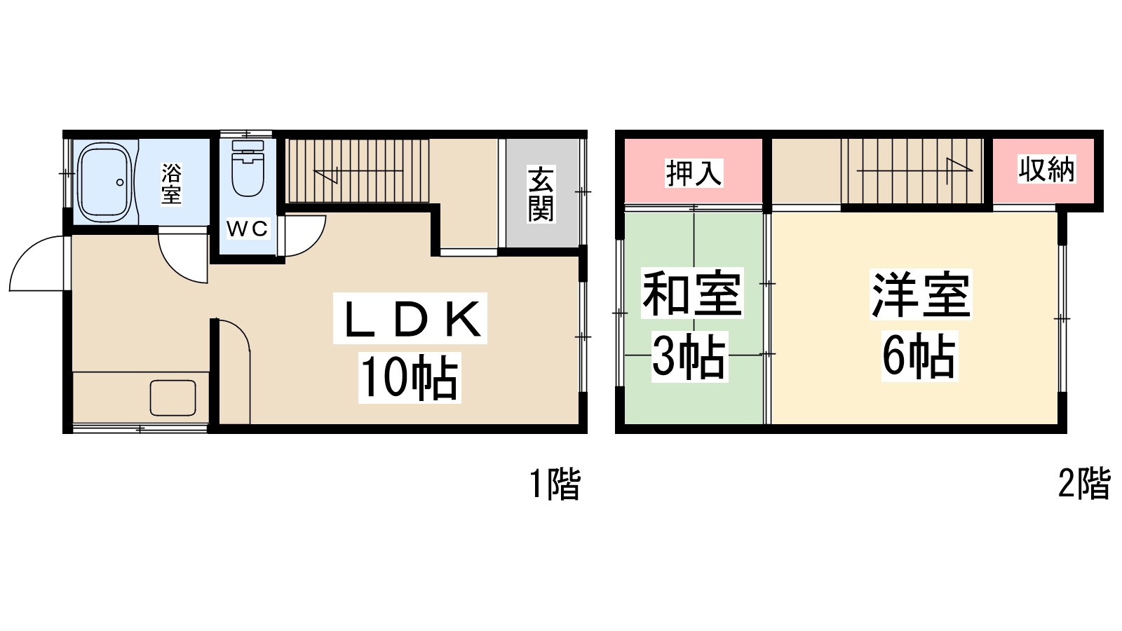 - LDK10帖、洋室6帖、和室3帖